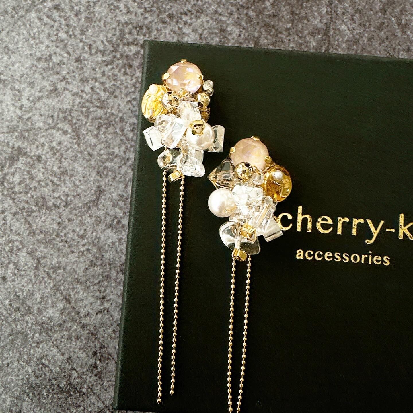ボールチェーンがアクセントになった大人可愛いビジューデザイン。